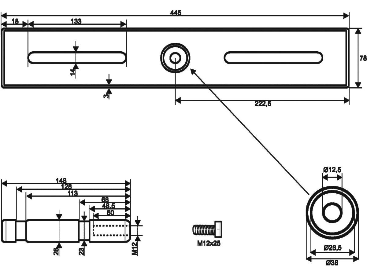 Horizontal adapter with TV-pin from 160 to 405 mm, max. load WLL 180 kg