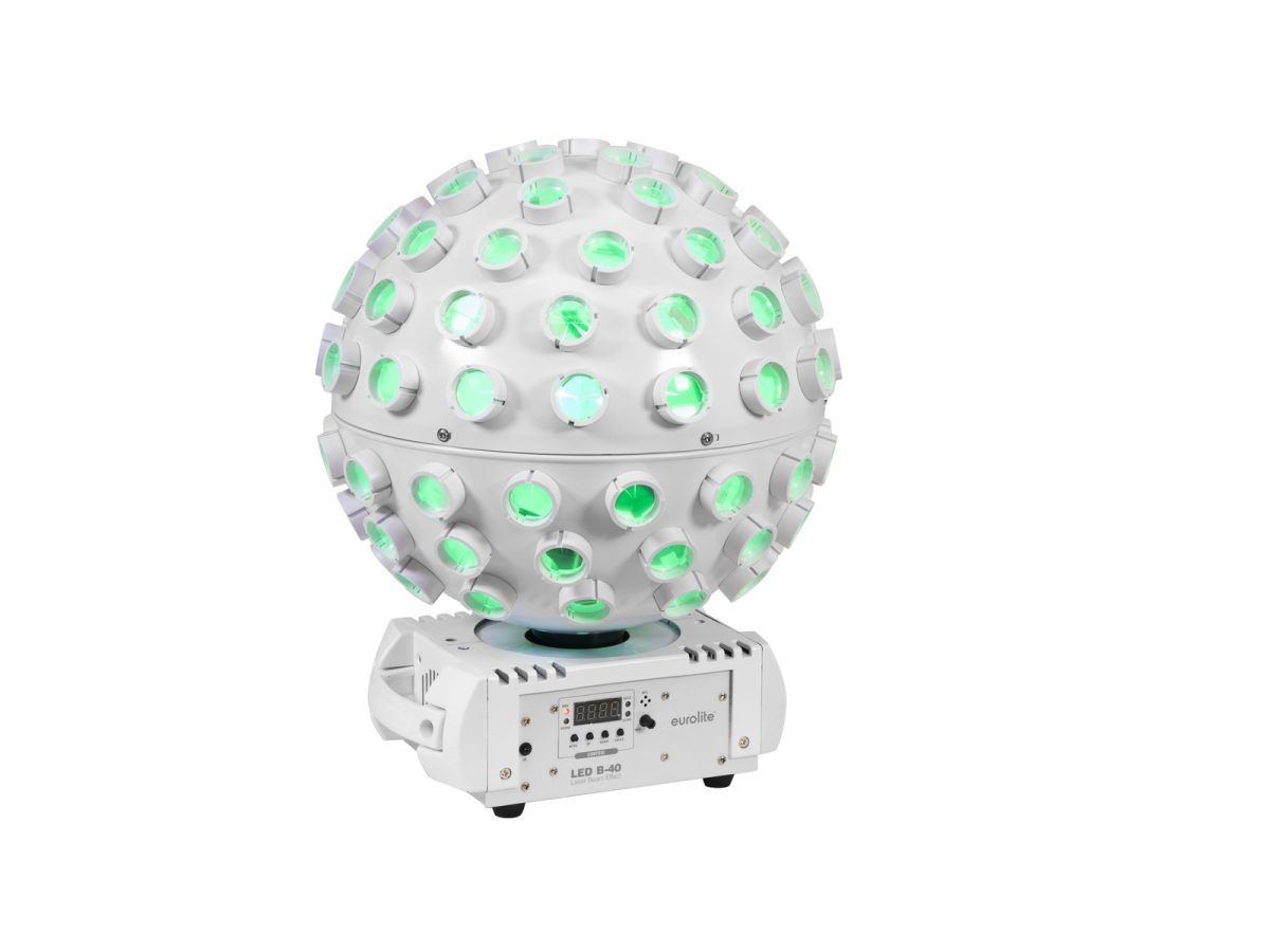 - 5 nagy teljesítményű, 8 W-os RGBW LED (4in1) a dinamikus tükörgömbhatásokhoz