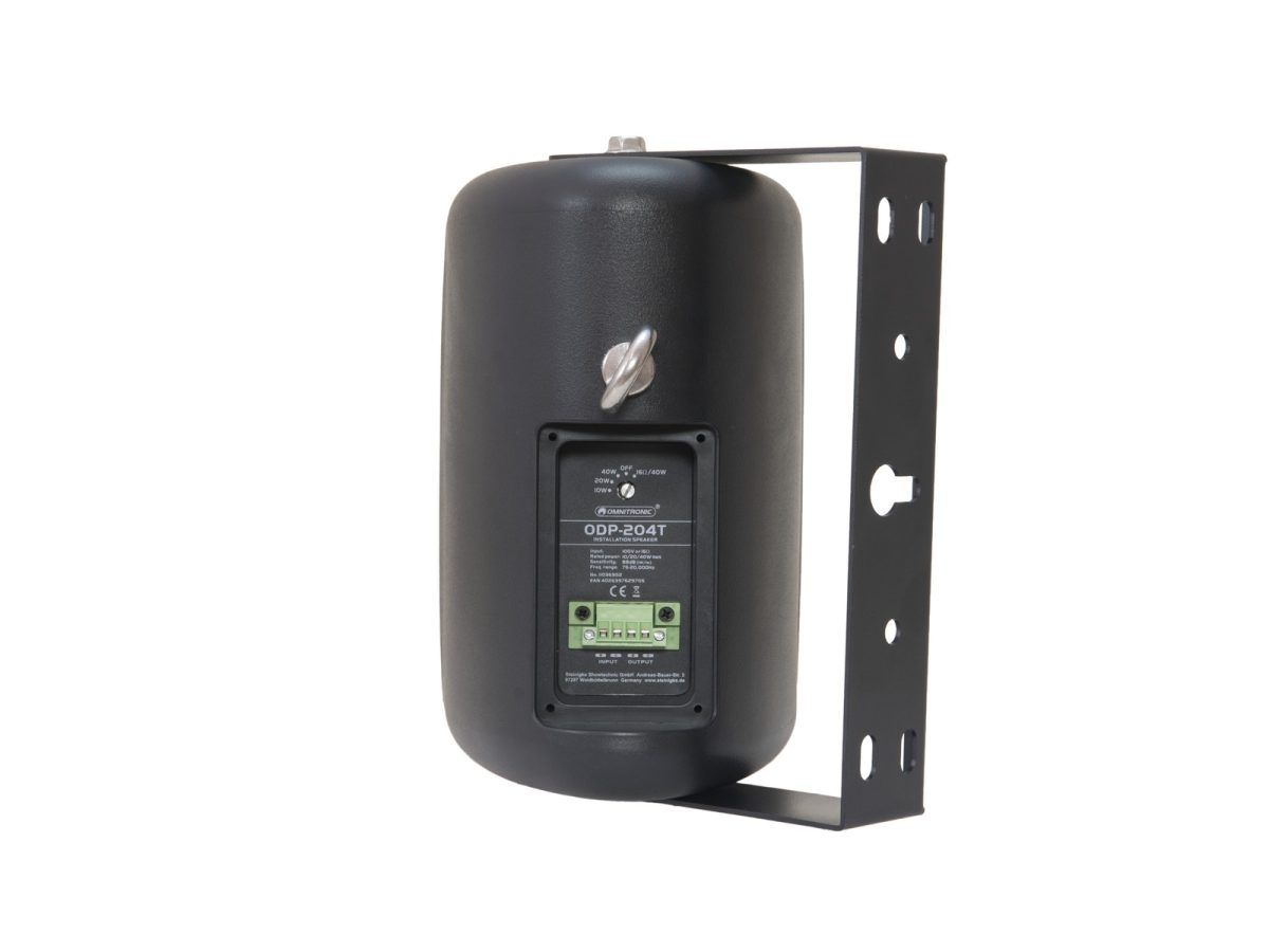 OMNITRONIC ODP-204T Installation Speaker 100V black 2x – 2db fali hangszóró Nagyszerű hang – 100 V-val is működik? Szeretne megbízható és szimmetrikushangzást bárjában, éttermében, üzletében vagy a szálloda konferencia területén? Szüksége van beltéri és kültéri hangszórókra? Az OPD sorozat használatával hatékony felhasználású hangszórókat kap, amelyek megfelelnek az összes követelménynek. A hangszórók ragyogó hangminőséggel rendelkeznek, alacsony ohmos (16 ohmos) és 100 V-os változatban kaphatók. Ez a kettő kiterjed mind a kis, mind a nagy telepítésekre. A szállításhoz egy forgatható rögzítő konzol tartozik. Opcionálisan elérhető egy megfelelő színű forgatható fali tartó. Időjárásálló (IP54) műanyag szekrényükkel az ODP hangszórók jól előkészítettek kültéri használatra, természetesen beltéri használatra is lehetőség van.
