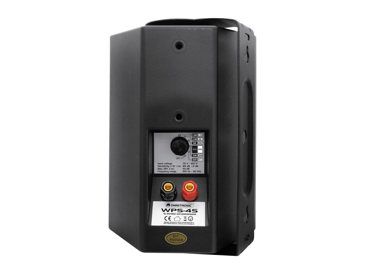 OMNITRONIC WPS-4S PA Wall Speaker – Fali hangszóró Az OMNITRONIC WPS sorozata jól átgondolt csomagjával győz meg: a letagadhatatlan szép megjelenésen kívül a hang és a funkciók is magas szinten vannak. A kétirányú rendszerek, mint a WPS-4S, többlépcsős potenciométerrel, ABS műanyag házzal, fém biztonsági védelemmel és elfordítható rögzítő konzollal vannak felszerelve. A trapézszerkezet miatt a sarkokba történő felszerelés minden máshoz hasonlóan egyszerű.