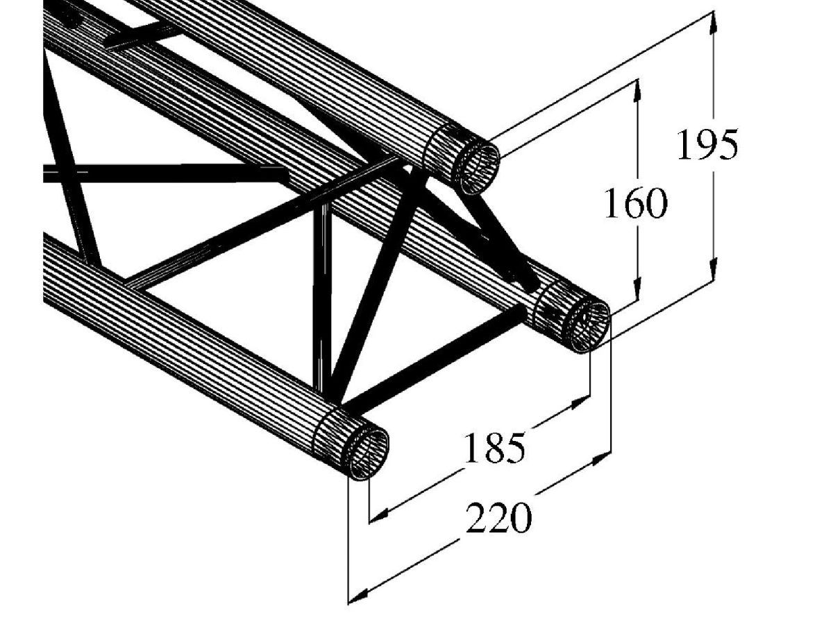 ALUTRUSS DECOLOCK DQ3-750 3-Way Cross Beam – 3 pontos traverz rendszer kereszt tartó DECOLOCK DQ3 hárompontos traverz fényhíd rendszer A DECOLOCK DQ3 egy 3 pontos traverz fényhíd rendszer alumíniumból. Az egyes elemek három kúpon, csatlakozókon és csatlakozókon keresztül vannak összekötve. A kúpos összekötő elem csatlakozási rendszer előnye, hogy a kúpos összekötő elem összekötő elemek teljesen illeszkednek a fő merevítő okhoz, így garantálva a legnagyobb terhelhetőséget. A Quick-Lock rendszer gyors, hatékony és esztétikus összeszerelést tesz lehetővé, amikor a traverz tartó szerkezeteket gyakran összeszerelik és szétszerelik. A három fő merevítő 35 mm-es, 2 mm-es falvastagságú alumíniumcsőből készül, és kellő szilárdságot kínál kis súly mellett. A merevítők átmérője 10 mm, 2 mm falvastagsága, és dekoratív megjelenést kölcsönöznek a rendszernek. A DECOLOCK segítségével kompakt felszereléseket valósíthat meg, alacsony önsúlyú, pl. g. üzleti kiállításokhoz, üzleti dekorációkhoz, kiállításokhoz, belsőépítészethez, csarnokokhoz , diszkókhoz és színházakhoz. A Decolock elsősorban dekorációs installációkhoz készült, és rendkívül esztétikus megjelenése miatt fix vagy ideiglenes installációkhoz használható. Ennek a rendszernek az előnyei a kompakt felépítés, 220 és 195 mm külső méretekkel, alacsony tömeggel, optimális szilárdsággal, valamint egyszerű és gyors összeszereléssel. A traverz fényhíd rendszer dokumentációja szorosan kapcsolódik az SQ P1 – traverz fényhíd rendszer ek gyakorlati kódexéhez. a VPLT / PLASA. A terhelési táblázat mint számítási foglalat letölthető az internetről a termék megvásárlása előtt! Kérjük, vegye figyelembe: ezt a traverz fényhíd rendszer t soha nem szabad kombinálni más rendszerekkel!