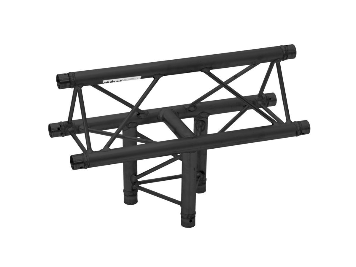 ALUTRUSS DECOLOCK DQ3-SPAT38 3-Way T-Piece 90° bk – 3 utas T-elem 3 pontos traverz rendszerhez DECOLOCK DQ3 hárompontos traverz fényhíd rendszer A DECOLOCK DQ3 egy 3 pontos traverz fényhíd rendszer alumíniumból. Az egyes elemek három kúpon, csatlakozókon és csatlakozókon keresztül vannak összekötve. A kúpos összekötő elem csatlakozási rendszer előnye, hogy a kúpos összekötő elem összekötő elemek teljesen illeszkednek a fő merevítő okhoz, így garantálva a legnagyobb terhelhetőséget. A Quick-Lock rendszer gyors, hatékony és esztétikus összeszerelést tesz lehetővé, amikor a traverz tartó szerkezeteket gyakran összeszerelik és szétszerelik. A három fő merevítő 35 mm-es, 2 mm-es falvastagságú alumíniumcsőből készül, és kellő szilárdságot kínál kis súly mellett. A merevítők átmérője 10 mm, 2 mm falvastagsága, és dekoratív megjelenést kölcsönöznek a rendszernek. A DECOLOCK segítségével kompakt felszereléseket valósíthat meg, alacsony önsúlyú, pl. g. üzleti kiállításokhoz, üzleti dekorációkhoz, kiállításokhoz, belsőépítészethez, csarnokokhoz , diszkókhoz és színházakhoz. A Decolock elsősorban dekorációs installációkhoz készült, és rendkívül esztétikus megjelenése miatt fix vagy ideiglenes installációkhoz használható. Ennek a rendszernek az előnyei a kompakt felépítés, 220 és 195 mm külső méretekkel, alacsony tömeggel, optimális szilárdsággal, valamint egyszerű és gyors összeszereléssel. A traverz fényhíd rendszer dokumentációja szorosan kapcsolódik az SQ P1 – traverz fényhíd rendszer ek gyakorlati kódexéhez. a VPLT / PLASA. A terhelési táblázat mint számítási foglalat letölthető az internetről a termék megvásárlása előtt! Kérjük, vegye figyelembe: ezt a traverz fényhíd rendszer t soha nem szabad kombinálni más rendszerekkel!