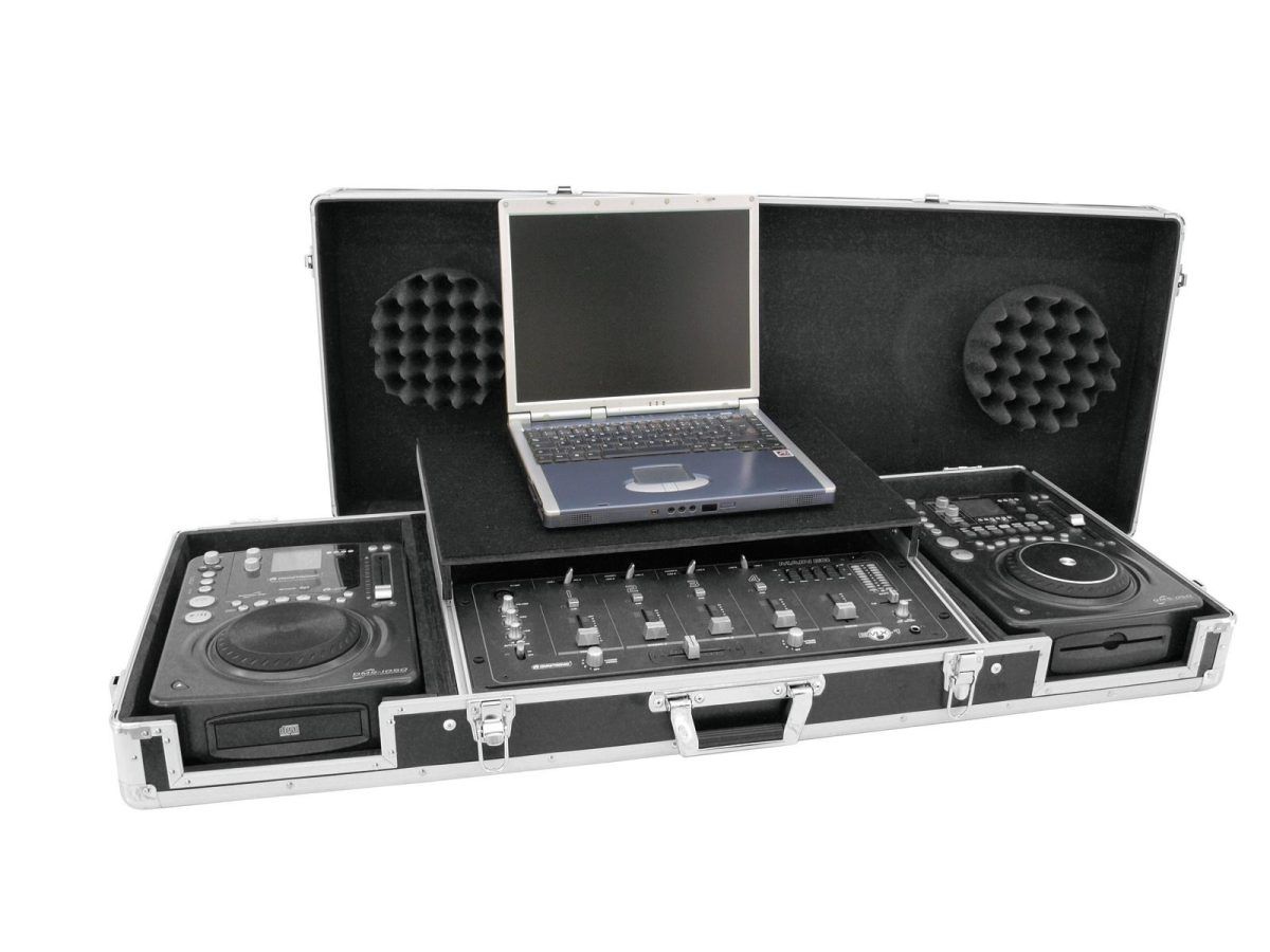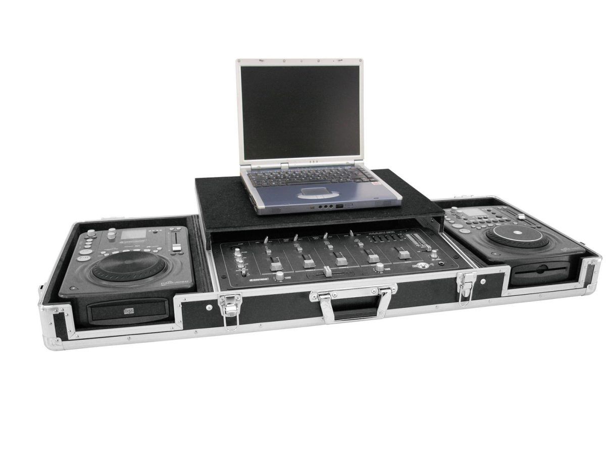 ROADINGER Universal Console DS-1 2xCD/1xM-19 LT bk – Professzionális DJ szállítóláda, alumínium, laptop tálcával, fekete