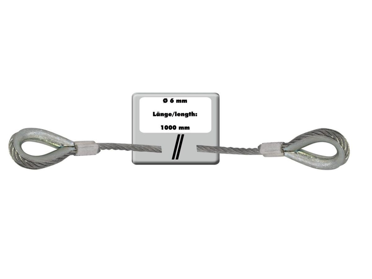 EUROLITE Steel Rope 1000x6mm silver with Thimble – Biztosító kötél EUROLITE emelőkötelek, biztonsági kötelek Az EUROLITE emelőkötelek, biztonsági kötelek megfelelnek a német szakmai biztosító szövetség jelenlegi szabályozásának, amelyet a BGI 810-3: 2007-03 összefoglaló tartalmaz. Az emelő köteleket, a biztonsági kötéleket a DIN EN 12385-4: 2008-06 és a DIN 56927: 2009-03 európai szabványoknak megfelelően gyártják. Az emelő köteleket, biztonsági kötéleket az LGA, egy független és akkreditált tesztelő intézet teszteli. Az LGA által tanúskodó törésterhelést a német szakmai biztosító egyesület által megkövetelt DIN EN 10204 szabvány szerinti vizsgálati jegyzőkönyv dokumentálja. Nyilvánvaló, hogy minden felhasználó felszerelheti és rögzítheti a személyek felett a terheket ezekkel az emelő kötelekkel, biztonsági kötélekkel minden olyan területen, ahol a BGV C1 kötelező. Használjon rögzítő hevederként Ezeket a köteleket WLL-vel látják el, amelyek leírják a maximális terhelést általános emelési célokra. Minden olyan területen, ahol a BGV C1 szükséges, a helyes emelőkötelet csak a BGI 810-3: 2007-03 2. táblázata választhatja ki. E táblázat szerint a kötél maximális terhelése 165 kg (egyszálú). Használjon biztonsági kötélkéntA helyes biztonsági kötélt csak a BGI 810-3: 2007-03 9. táblázata választhatja ki. E táblázat szerint ennek a biztonsági kötélnek a maximális terhelése 35 kg.