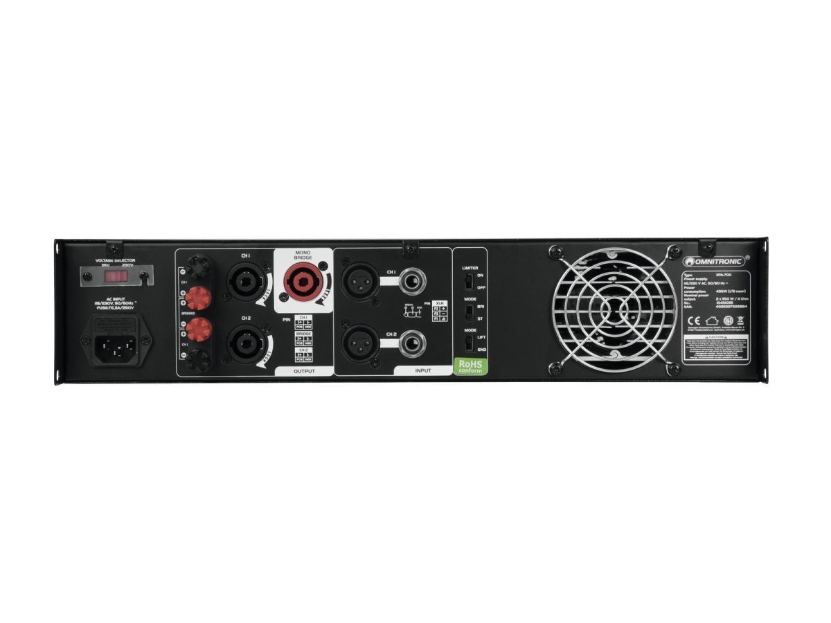 OMNITRONIC XPA-700 Amplifier – PA Erősítő végfok, beépített limiterrel, 2x350W, 2x240W, 1x700W