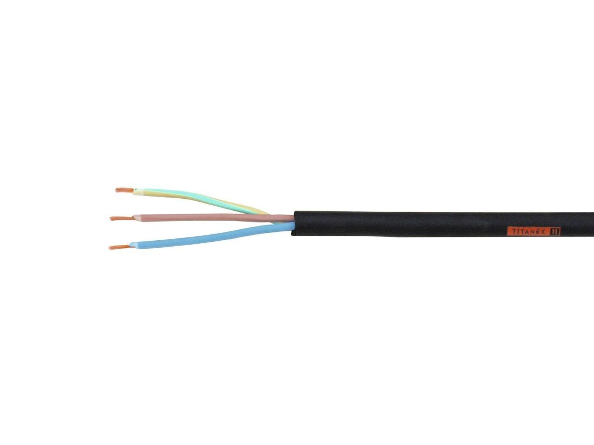 TITANEX Power Cable 3×1.5 100m H07RN-F Kiváló minőségű Titanex tápkábel A Titanex tápkábelek nagy teljesítményű kábelként használhatók audio-, könnyű- és nehézgépekhez, és rendkívül ellenállnak mind a rendkívül magas, mind pedig az alacsony hőmérsékletnek. Ezek a kábelek nagyon rugalmasak és nagyon masszívak a hosszú élettartamú polikloroprén köpenyük miatt.