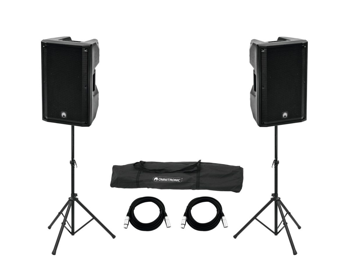 OMNITRONIC Set 2x XKB-215A + Speaker Stand MOVE MK2 – 1 pár 2-Utas aktív hangfal, 15″ mélynyomóval, hangfalállvánnyal és kábellel