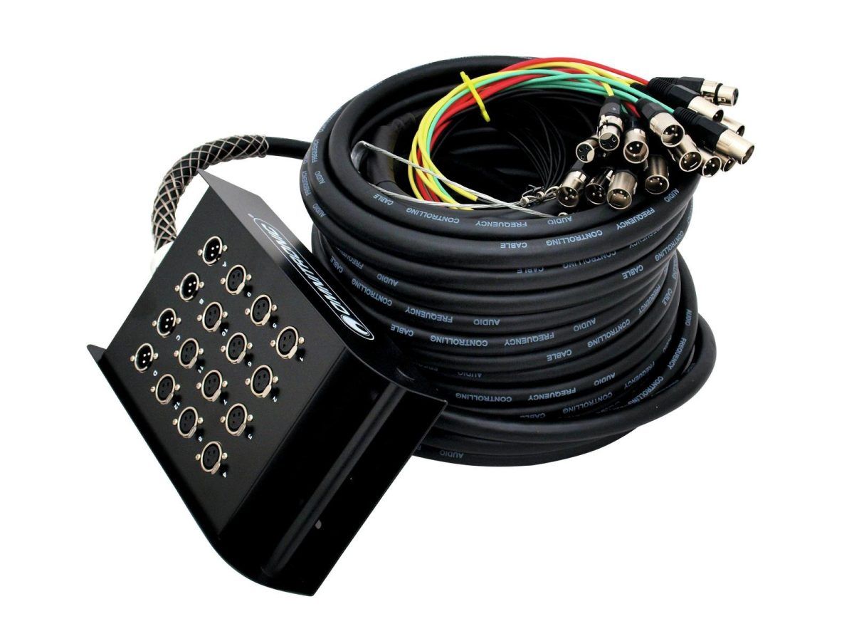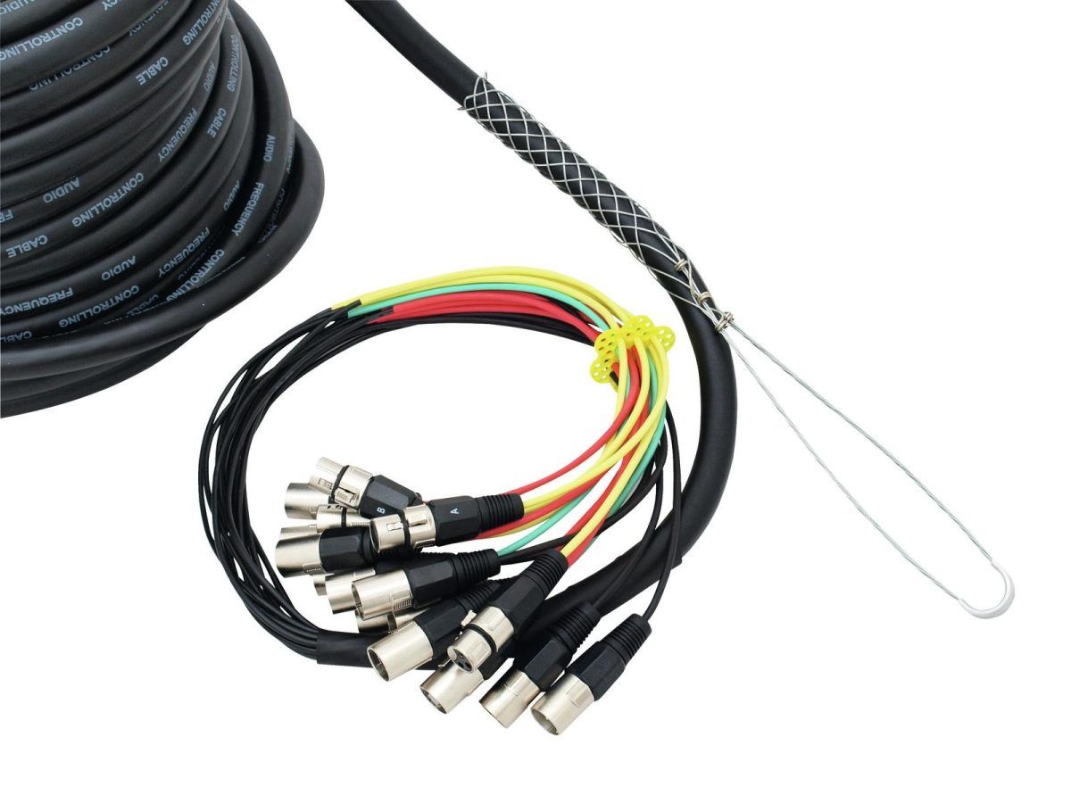 • Highly flexible 30 m mulitcore cable with color coding, splitted into 12 plugs (female) and 4 plugs (male)