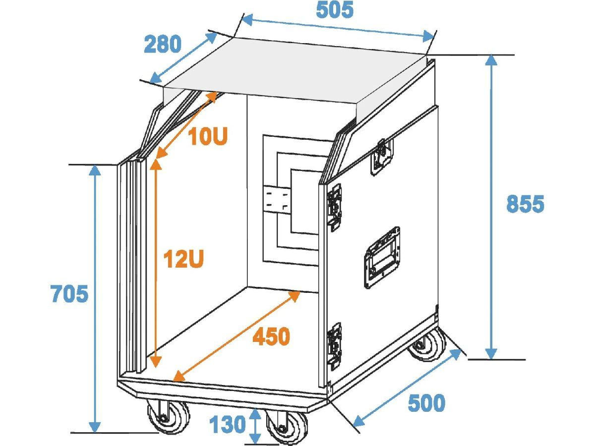 • Suitable for 483 mm units (19″), e.g. controllers and mixers, with 10 U (horizontal) and 12 U (vertical)