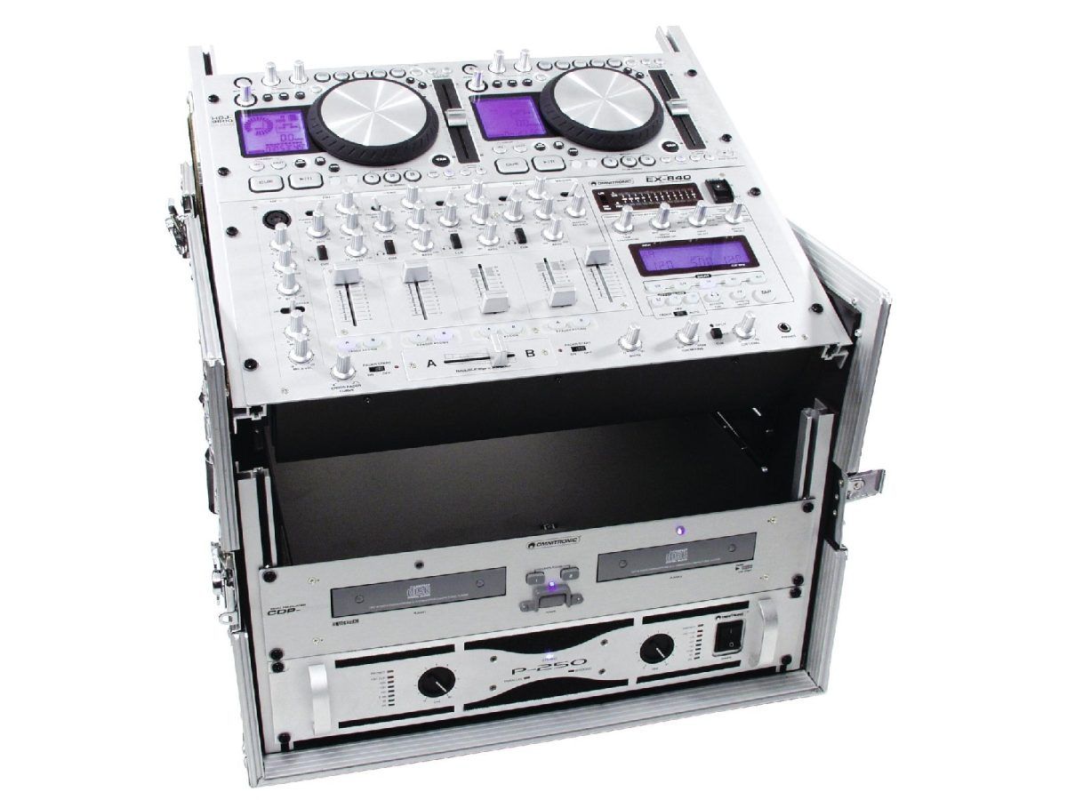 - Professzionális megoldás a teljes DJ-beállításhoz; ez a nagy teherbírású tok befogadja a PA-t, dupla CD-lejátszó, 483 mm-es keverő (19 “) és effekt egységek