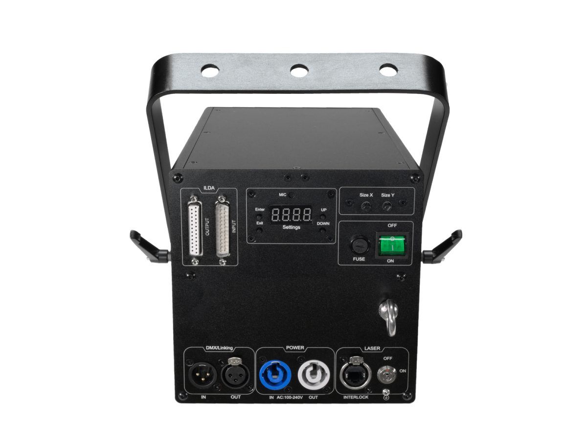 | Lézermodul: | Piros (R) 1800 mW 638 nm zöld (G) 1800 mW 520 nm Kék (B) 3700 mW 450 nm |