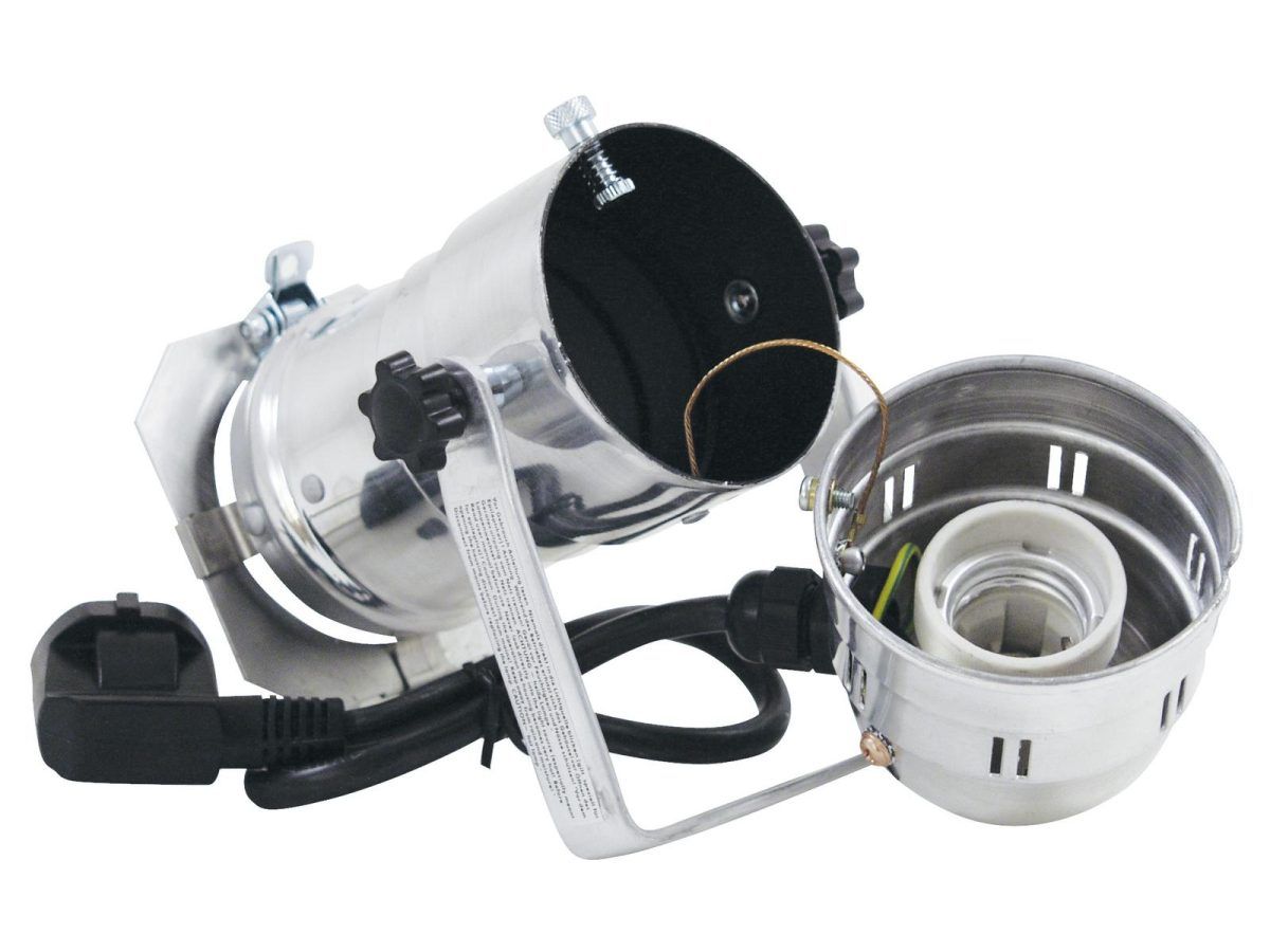 - Teljesen bekötve E27 foglalattal és színes színszűrővel