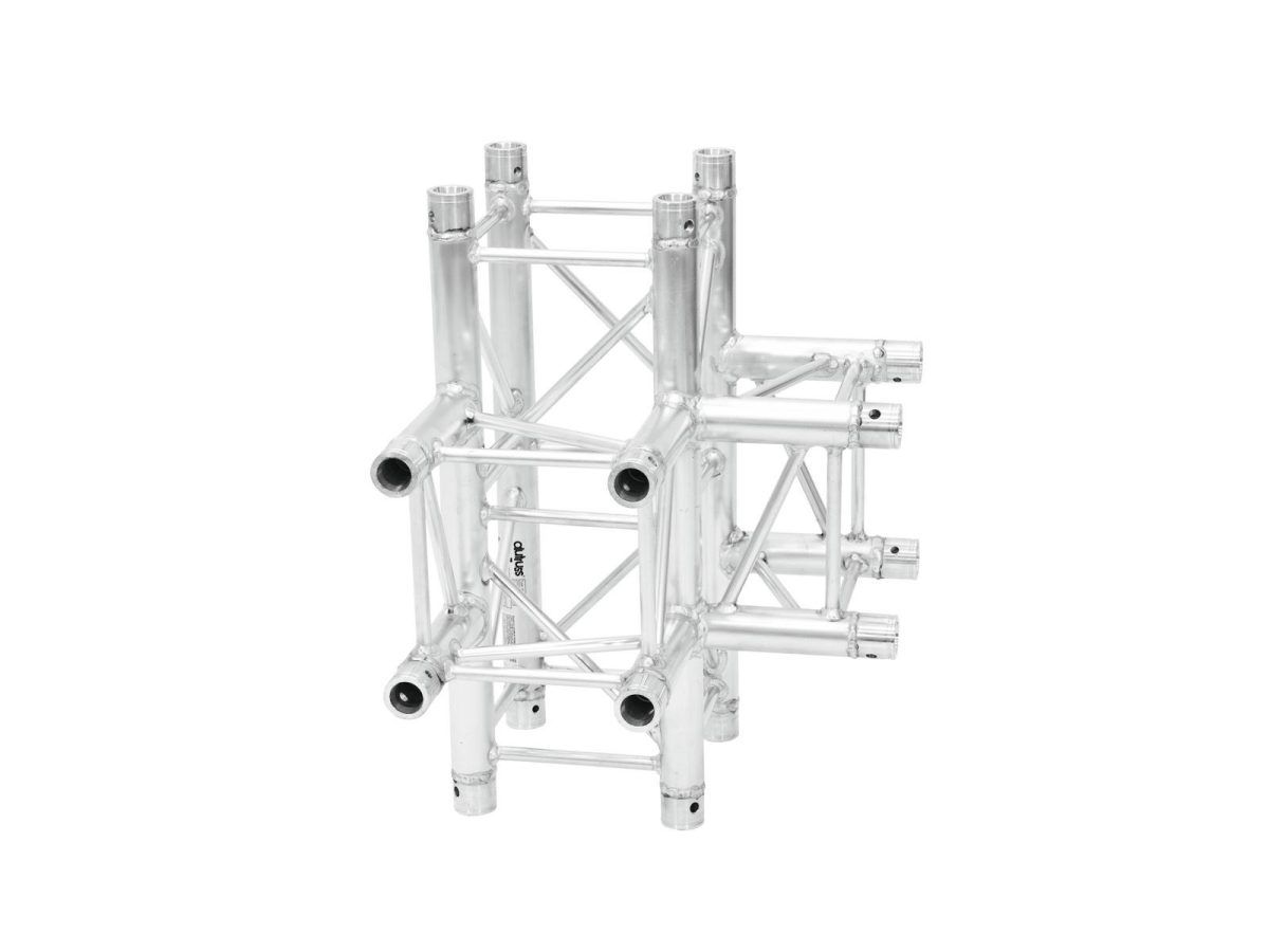 ALUTRUSS QUADLOCK 6082T-42 4-Way T-Piece 4 pontos traverz rendszer T alakú elem QUADLOCK 6082 4 pontos traverz fényhíd rendszer A QUADLOCK 6082 egy 4 pontos traverz fényhíd rendszer alumíniumból. Az egyes elemek négy kúpon, csatlakozókon és csatlakozókon keresztül vannak összekötve. A QUADLOCK 6082 EN-AW 6082 T6 (AlMgSi1 T6) ötvözetből készül még nagyobb terhelések esetén. A kúpos összekötő elem csatlakozási rendszer előnye, hogy a kúpos összekötő elem összekötő elemek teljesen illeszkednek a fő merevítő okhoz, így garantálva a legnagyobb terhelhetőséget. A Quick-Lock rendszer gyors, hatékony és esztétikus összeszerelést tesz lehetővé, amikor a traverz tartó szerkezeteket gyakran összeszerelik és szétszerelik. A négy fő merevítő 50 mm-es, 2 mm-es falvastagságú alumíniumcsőből készül, és jó kapcsolatot mutat az erő és a súly között. A merevítők átmérője 16 mm, 2 mm falvastagságuk, és elegendő fényt hagynak a tengelykapcsolók, a kampók és a bilincsek felszereléséhez. A QUADLOCK QQTR 290 mm külső méretekkel rendelkező stabil tartószerkezet nagyobb terhelések és hosszabb élettartam érdekében. Ezt a rendszert főleg intenzív használatra tervezték színpadi installációkban, vásárokon, rendezvényeken, de állandóan diszkókban és színházakban is. Csiszolt felülete igazi szemfülessé teszi ezt az univerzális rendszert. A szabványos rendszerhosszak, sarkok és tartozékok széles skálája miatt ez a rendszer rendkívül sokoldalú és korlátlan tervezési lehetőségeket kínál. Ennek a traverz fényhíd rendszer nek a gyártását TUV-felügyelet alatt tartják. A terhelési tábla, mint számítási alap, a termék megvásárlása előtt letölthető az internetről! Felhívjuk figyelmét: ezt a traverz fényhíd rendszer t soha nem szabad kombinálni más rendszerekkel!