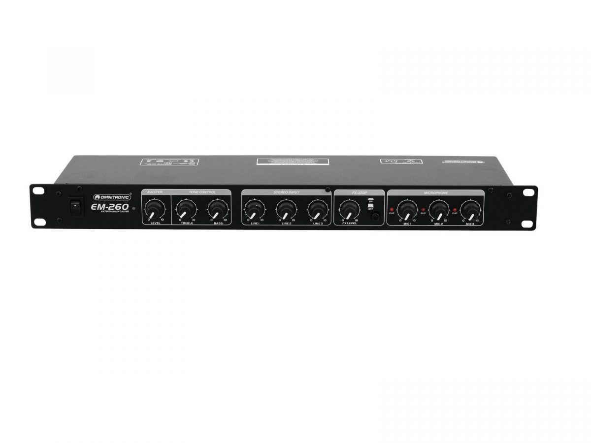 OMNITRONIC EM-260B Entertainment Mixer – Keverőpult, 6 csatornás (3x Mic/Line+3xLine), fekete Keverő mikrofonhoz és vonalforráshozTökéletes eszköz a karaoke-partikhoz: Az Omnitronic EM-260B szórakoztató keverővel 3 mikrofon- és 3 vonalforrást keverhet egy sztereó kimenethez – nagyon egyszerűen. A keverő felszerelése szintén egyszerű, a kicsi méreteknek köszönhetően rugalmas. Tervezése világosan elrendezett. Még akkor is, ha Ön kezdő, nagyon egyszerűen kezelheti a keverőt. Mivel egyértelműen felépített, nem fog eltévedni. Minden csatornán van egy klip LED. A mikrofonbemenet opcionálisan 12 V fantomtápot mutat. Az egység tökéletesen alkalmas bárok, éttermek vagy klubházak telepítésére. Hatással van egy felvételi munkamenetre. Az FX küldés / visszatérés (FX szintű vezérléssel) kiválaszthatja az effektusokat, hogy támogassa a hangját. Énekléseket rögzítsen a rekord kimenet felhasználásával.