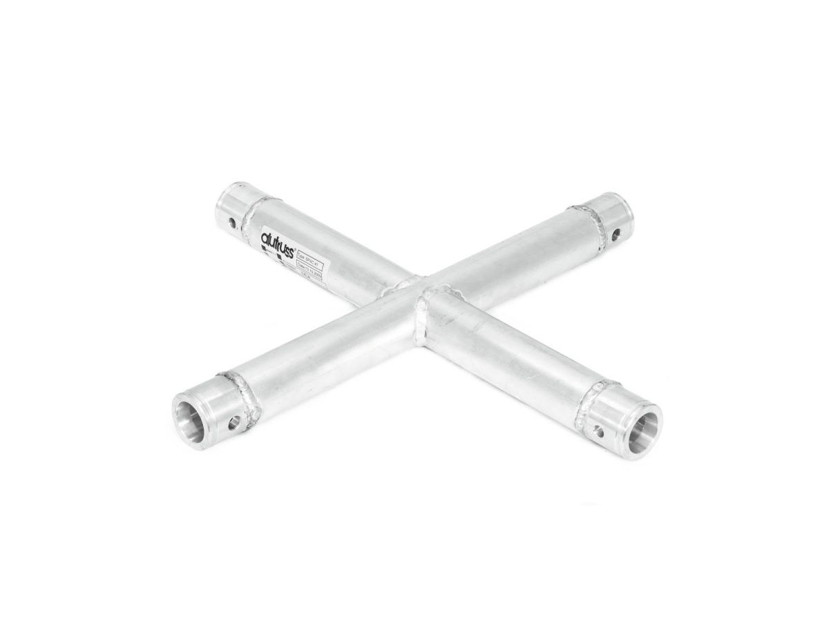 ALUTRUSS SINGLELOCK SPAC-41 4-way Crosspiece 90° Szimpla cső gyorszárral A SINGLELOCK SP egypontos traverz fényhíd rendszer alumíniumból. Az egyes elemeket egy kúpos összekötő elem összekötő elem,rögzítő csapszegek és csatlakozók kötik össze. A kúpos összekötő elem csatlakozási rendszer előnye, hogy a kúpos összekötő elem összekötő elem teljesen beleillik a fő merevítő ba, így garantálva a legnagyobb terhelhetőséget. A Quick-Lock rendszer gyors, hatékony és esztétikus összeszerelést tesz lehetővé, amikor a traverz tartó szerkezeteket gyakran összeszerelik és szétszerelik. A fő tartócső 50 mm-es alumíniumcsőből készül, 2 mm-es falvastagsággal, és jó kapcsolatot kínál az erő és a súly között. stabil traverz fényhíd rendszer nagyobb terhelések és hosszabb tartósság érdekében. Ezt a rendszert főleg intenzív használatra tervezték színpadi installációkban, vásárokon, rendezvényeken, de állandóan diszkókban és színházakban is. A SINGLELOCK SP segítségével reklámtáblákkal ellátott dekoratív keretek, átviteli vászon stb. Valósíthatók meg. A rendszer szorosan kapcsolódik a VPLT / PLASA által kiadott SQ P1 – Truss Systems gyakorlati kódexekhez. A terhelési tábla, mint számítási alap, a termék megvásárlása előtt letölthető az internetről! Kérjük, vegye figyelembe: ezt a traverz fényhíd rendszer t soha nem szabad kombinálni más rendszerekkel!