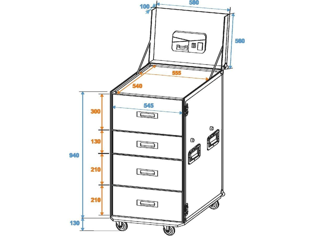 ROADINGER Universal Drawer Case WDS-1 with wheels Professzionális fiókos szállítóláda, kerekekkel, hozzávaló asztallal