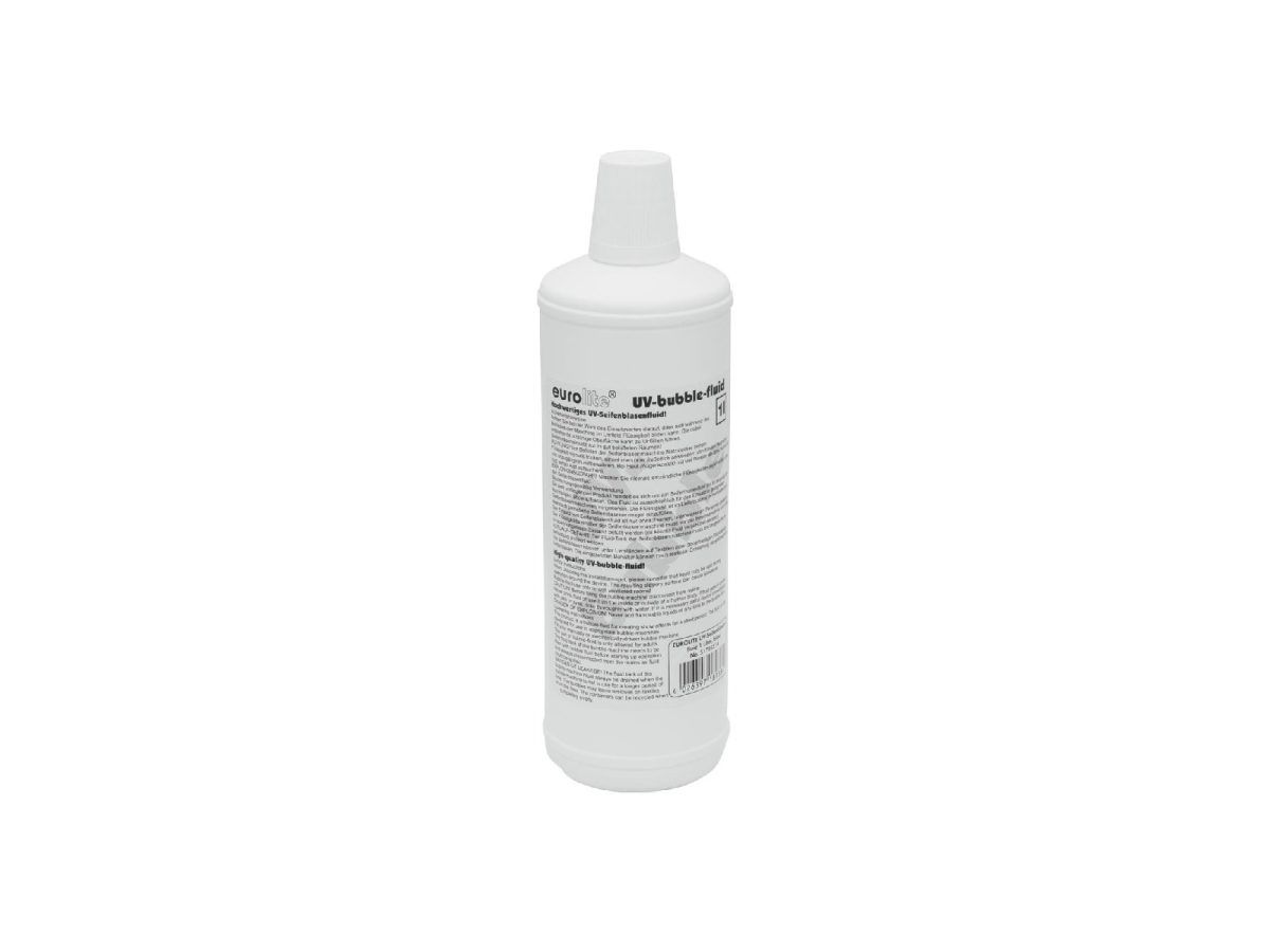 EUROLITE UV-Bubble Fluid 1l blue – Használatra kész, UV aktív buborékfolyadék, kék Használatra kész UV-aktív buborékok Az EUROLITE használatra kész buborék folyadék normál buborékokat állít elő normál megvilágítási körülmények között. UV-fény hatására a szappanbuborékok kékesen izzanak, ami a Fluid-ot a diszkók, partik és koncertek legnagyobb slágerévé teszi. Az EUROLITE UV-buborékfolyadék Németországban készül.
