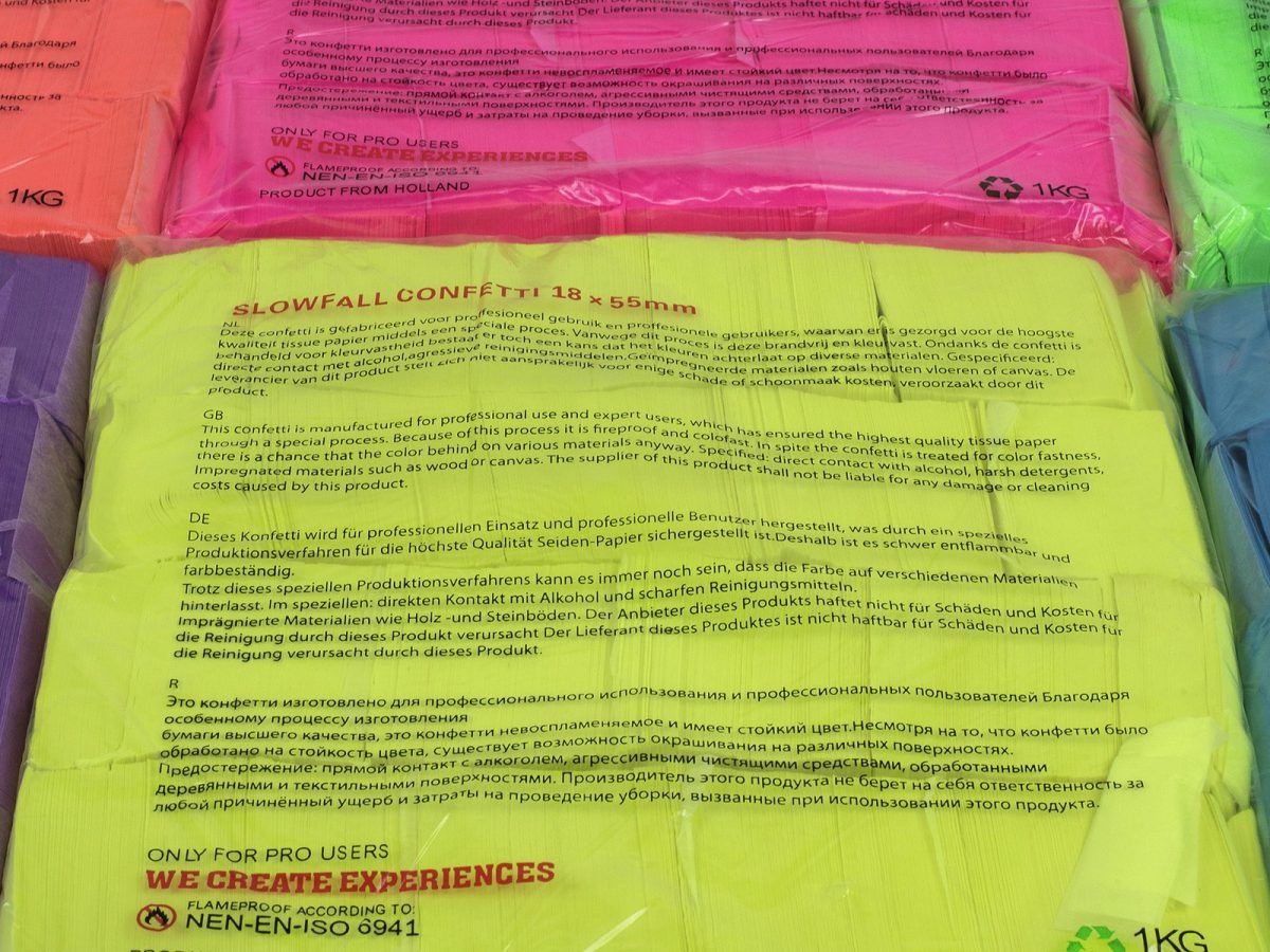- zacskóba csomagolva a konfetti lövők gyors megtöltéséhez