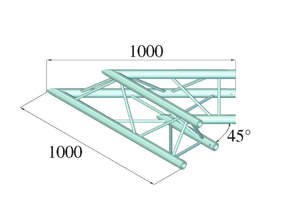 ALUTRUSS TRILOCK 6082AC-19 2-Way Corner 45° 3 pontos traverz rendszer sarokelem A TRILOCK 6082 hárompontos traverz fényhíd rendszer alumíniumból. Az egyes elemek három kúpon, csatlakozókon és csatlakozókon keresztül vannak összekötve. A TRILOCK 6082 még nagyobb terhelésekhez EN-AW 6082 T6 (AlMgSi1 T6) ötvözetből készül. A kúpos összekötő elem csatlakozási rendszer előnye, hogy a kúpos összekötő elem összekötő elemek teljesen beleillenek a fő merevítő okba, így garantálva a legnagyobb teherbírást. A Quick-Lock rendszer gyors, hatékony és esztétikus összeszerelést tesz lehetővé, amikor a traverz tartó szerkezeteket gyakran összeszerelik és szétszerelik. A három fő merevítő 50 mm-es alumíniumcsőből készül, 2 mm-es falvastagsággal, és jó kapcsolatot kínál a szilárdság és a súly között. A merevítők átmérője 16 mm, 2 mm falvastagságuk, és elegendő fényt hagynak a csatlakozók, a kampók és a bilincsek felszereléséhez. A 290 és 257 mm külső méretekkel rendelkező TRILOCK QTTR stabil traverz fényhíd rendszer nagyobb terhelések és hosszabb tartósság érdekében. Ezt a rendszert elsősorban intenzív használatra tervezték színpadi installációkban, vásári installációkban, rendezvény-installációkban, de fix diszkókban és színházakban is. Csiszolt felülete valódi szemfülessé teszi ezt az univerzális rendszert. A szabványos rendszerhosszak, sarkok, körök és tartozékok széles skálája miatt ez a rendszer rendkívül sokoldalú és korlátlan tervezési lehetőségeket kínál. Ennek a traverz fényhíd rendszer nek a gyártását TUV-felügyelet alatt tartják. A terhelési táblázat mint számítási foglalat letölthető az internetről a termék megvásárlása előtt! Kérjük, vegye figyelembe: ezt a traverz fényhíd rendszer t soha nem szabad kombinálni más rendszerekkel!