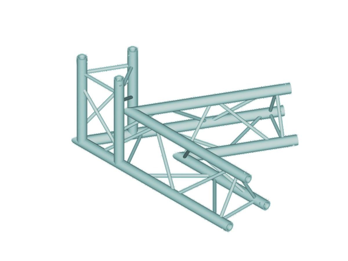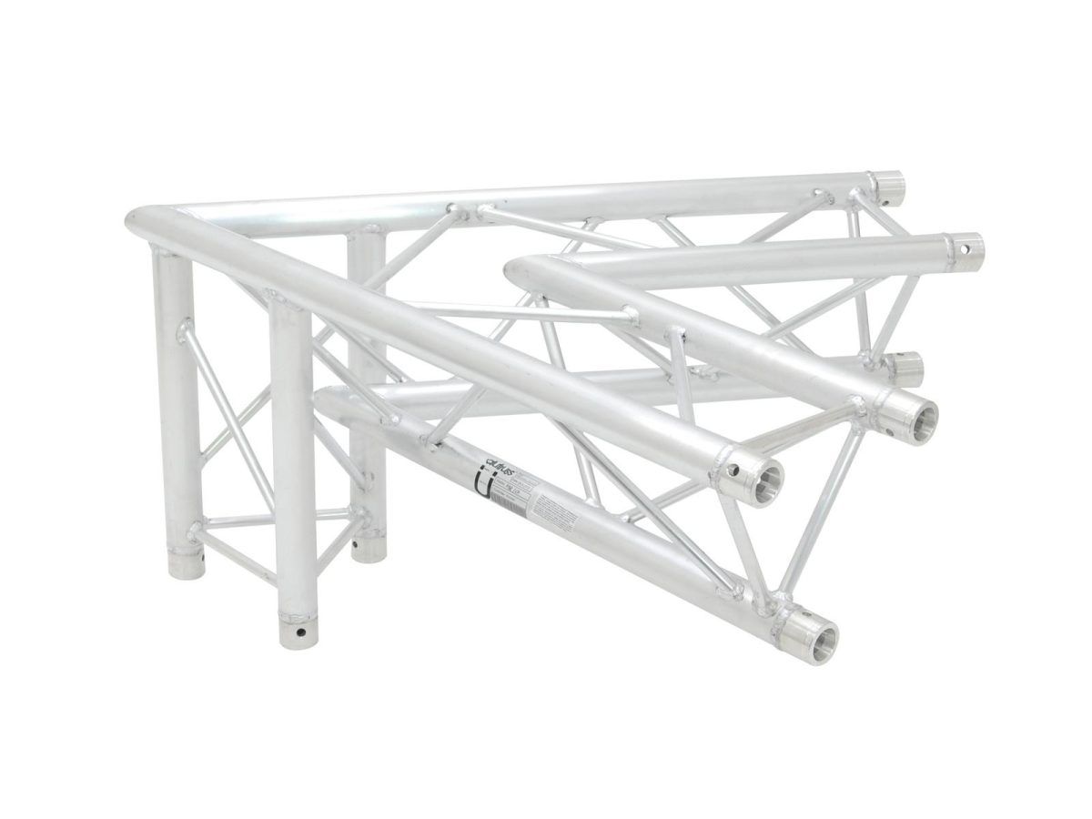 ALUTRUSS TRILOCK 6082AC-20-3 3-Way Corner 60° 3 pontos traverz rendszer sarokelem TRILOCK 6082 3 pontos traverz fényhíd rendszer A TRILOCK 6082 egy hárompontos traverz fényhíd rendszer alumíniumból. Az egyes elemek három kúpon, csatlakozókon és csatlakozókon keresztül vannak összekötve. A TRILOCK 6082 még nagyobb terhelésekhez EN-AW 6082 T6 (AlMgSi1 T6) ötvözetből készül. A kúpos összekötő elem csatlakozási rendszer előnye, hogy a kúpos összekötő elem összekötő elemek teljesen beleillenek a fő merevítő okba, így garantálva a legnagyobb teherbírást. A Quick-Lock rendszer gyors, hatékony és esztétikus összeszerelést tesz lehetővé, amikor a traverz tartó szerkezeteket gyakran összeszerelik és szétszerelik. A három fő merevítő 50 mm-es alumíniumcsőből készül, 2 mm-es falvastagsággal, és jó kapcsolatot kínál a szilárdság és a súly között. A merevítők átmérője 16 mm, 2 mm falvastagságuk, és elegendő fényt hagynak a csatlakozók, a kampók és a bilincsek felszereléséhez. A 290 és 257 mm külső méretekkel rendelkező TRILOCK QTTR stabil traverz fényhíd rendszer nagyobb terhelések és hosszabb tartósság érdekében. Ezt a rendszert elsősorban intenzív használatra tervezték színpadi installációkban, vásári installációkban, rendezvény-installációkban, de fix diszkókban és színházakban is. Csiszolt felülete miatt ez az univerzális rendszer igazi figyelemfelkeltő. A szabványos rendszerhosszak, sarkok, körök és tartozékok széles skálája miatt ez a rendszer rendkívül sokoldalú és korlátlan tervezési lehetőségeket kínál. Ennek a traverz fényhíd rendszer nek a gyártását TUV-felügyelet alatt tartják. A terhelési táblázat mint számítási foglalat a termék megvásárlása előtt letölthető az internetről! Kérjük, vegye figyelembe: ezt a traverz fényhíd rendszer t soha nem szabad kombinálni más rendszerekkel!