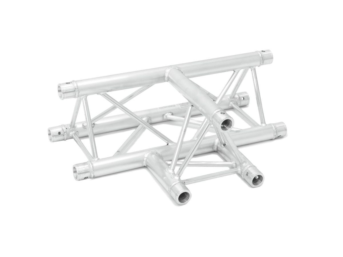 ALUTRUSS TRILOCK 6082AT-36 3-Way T-Piece 3 pontos traverz rendszer T alakú elem TRILOCK 6082 3 pontos traverz fényhíd rendszer A TRILOCK 6082 egy hárompontos traverz fényhíd rendszer alumíniumból. Az egyes elemek három kúpon, csatlakozókon és csatlakozókon keresztül vannak összekötve. A TRILOCK 6082 még nagyobb terhelésekhez EN-AW 6082 T6 (AlMgSi1 T6) ötvözetből készül. A kúpos összekötő elem csatlakozási rendszer előnye, hogy a kúpos összekötő elem összekötő elemek teljesen beleillenek a fő merevítő okba, így garantálva a legnagyobb terhelhetőséget. A Quick-Lock rendszer gyors, hatékony és esztétikus összeszerelést tesz lehetővé, amikor a traverz tartó szerkezeteket gyakran összeszerelik és szétszerelik. A három fő merevítő 50 mm-es alumíniumcsőből készül, 2 mm-es falvastagsággal, és jó kapcsolatot kínál a szilárdság és a súly között. A merevítők átmérője 16 mm, 2 mm falvastagságuk, és elegendő fényt hagynak a csatlakozók, a kampók és a bilincsek felszereléséhez. A 290 és 257 mm külső méretekkel rendelkező TRILOCK QTTR stabil traverz fényhíd rendszer nagyobb terhelések és hosszabb tartósság érdekében. Ezt a rendszert főleg intenzív használatra tervezték színpadi installációkban, vásárokon, rendezvényeken, de állandóan diszkókban és színházakban is. Csiszolt felülete miatt ez az univerzális rendszer igazi figyelemfelkeltő. A szabványos rendszerhosszak, sarkok, körök és tartozékok széles skálája miatt ez a rendszer rendkívül sokoldalú és korlátlan tervezési lehetőségeket kínál. Ennek a traverz fényhíd rendszer nek a gyártását TUV-felügyelet alatt tartják. A terhelési táblázat mint számítási foglalat letölthető az internetről a termék megvásárlása előtt! Kérjük, vegye figyelembe: ezt a traverz fényhíd rendszer t soha nem szabad kombinálni más rendszerekkel!