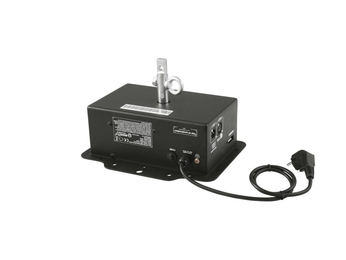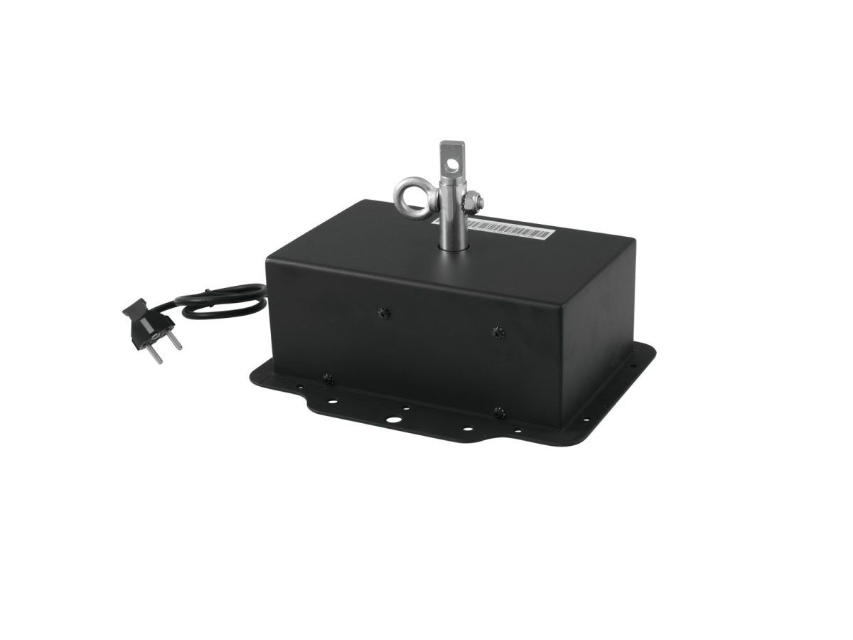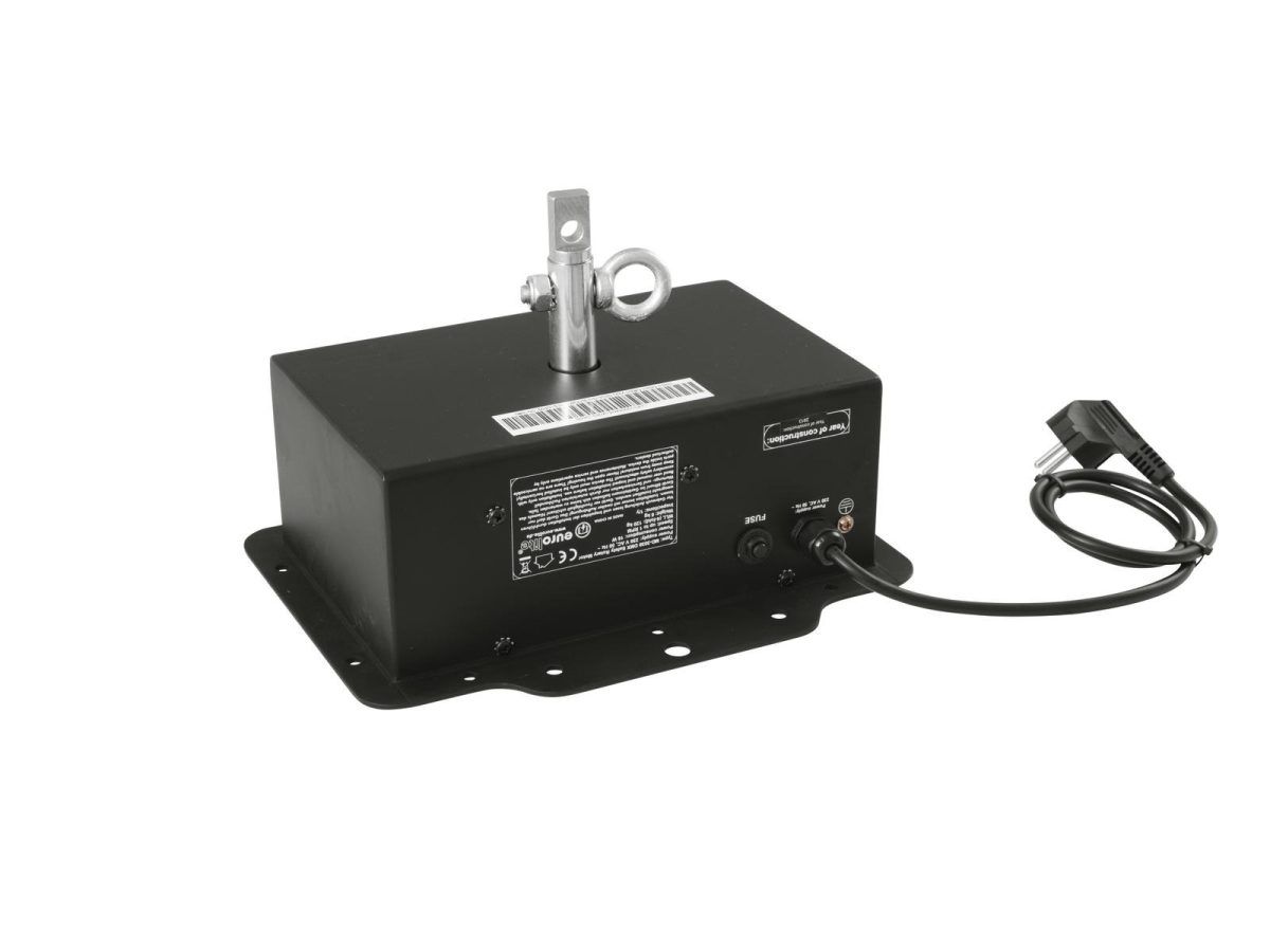 EUROLITE MD-3030 DMX Safety Rotary Motor DMX vezérelt tükörgömb motor Ez a szilárd tükörgömb motor akár 40 kg-os terhelést is képes elviselni. Ez megegyezik egy körülbelül 100 cm-es tükörgömbbel, 12-szeres biztonsági tartalékkal. A motor állítható sebességgel rendelkezik. Ez akár békés, akár gyorsabb effektusokat hoz létre. Az effektusok maximális kihasználása érdekében hozzáadhat egy tűt a tükörgömb megvilágításához. A forgásirány és sebesség szabályozható a DIP kapcsolókon vagy bármely kereskedelmi DMX vezérlőn keresztül. Nagyobb könnyű telepítések esetén a master-slave művelet több szinkronban működő eszközzel is lehetséges; nincs szükség külső vezérlésre. A motor szabadalmaztatott mechanikus esésvédelemmel van felszerelve a tengely akaratlan fellazulása ellen, valamint a biztonsági lánc rögzítéséhez szükséges második lyukkal. Minden Eurolite biztonsági motor megfelel a DIN EN ISO 12100 biztonsági normának vonatkozó balesetmegelőzési előírások. Minden gyártási díjat szigorú minőség-ellenőrzésnek vetnek alá, ami alkalmassá teszi a motort diszkókba és más nyilvános rendezvényekre. Az MD-3030 használatra kész, biztonsági csatlakozóval és tápkábellel együtt szállítva.