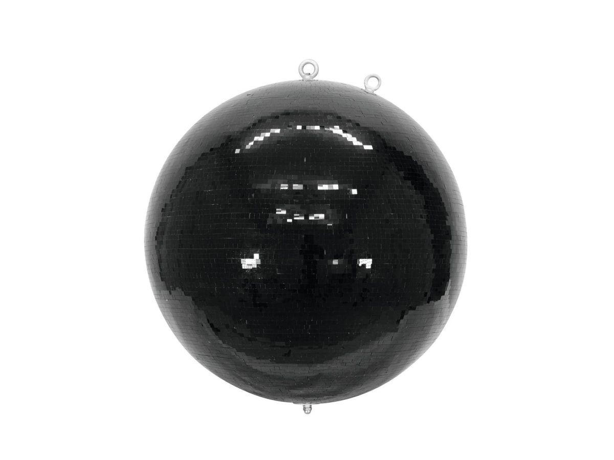 EUROLITE Mirror Ball 75cm black Tükörgömb, fekete Az Eurolite professzionális minőségű mega tükörgömbjének megdöbbentő átmérője 75 cm! Az ekkora tükörgömb igazi figyelemfelkeltő nagy klubokban és nagy rendezvényeken. A robusztus műanyag magot számtalan kicsi fekete tükör borítja, és folyamatos tengellyel rendelkezik, amely garantálja a nagy szakítószilárdságot. A tükörgömb két rögzítőfurattal is rendelkezik, amelyek lehetővé teszik mind a rögzítő lánc, mind a szükséges zuhanásvédelem rögzítését. Kiegészítőként megfelelő motorok, a szükséges konzolos anyag és egy szállító tok találhatók.