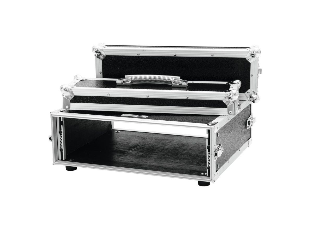 ROADINGER Effect Rack CO DD, 3U, 40cm deep, black Professzionális szállító rack táska, fekete Repülőház 483 mm-es egységekhez (19 “) Könnyen és biztonságosan szállíthatja 483 mm-es vezérlő- és effektusegységeit (19”) a 40 cm mélységű ROADINGER CO DD rack-állvánnyal. Két levehető borítás (kétajtós kivitel), négy nagy, acélerősítésű gumitalp és beépített racksínek megkönnyítik és kényelmesek a szállítóláda kezelését. Többrétegű ragasztott fa, stabil alumínium profilkeret lekerekített sarkokkal és három lábú, közepes méretű acélgömbsarkok stabilitást biztosítanak a toknak. A szállítóláda négy rögzítőfüllel rendelkezik, rögzítésre szolgáló lyukakkal, beépített állványsínekkel és tokfogantyúval. A maximális terhelés 25 kg.