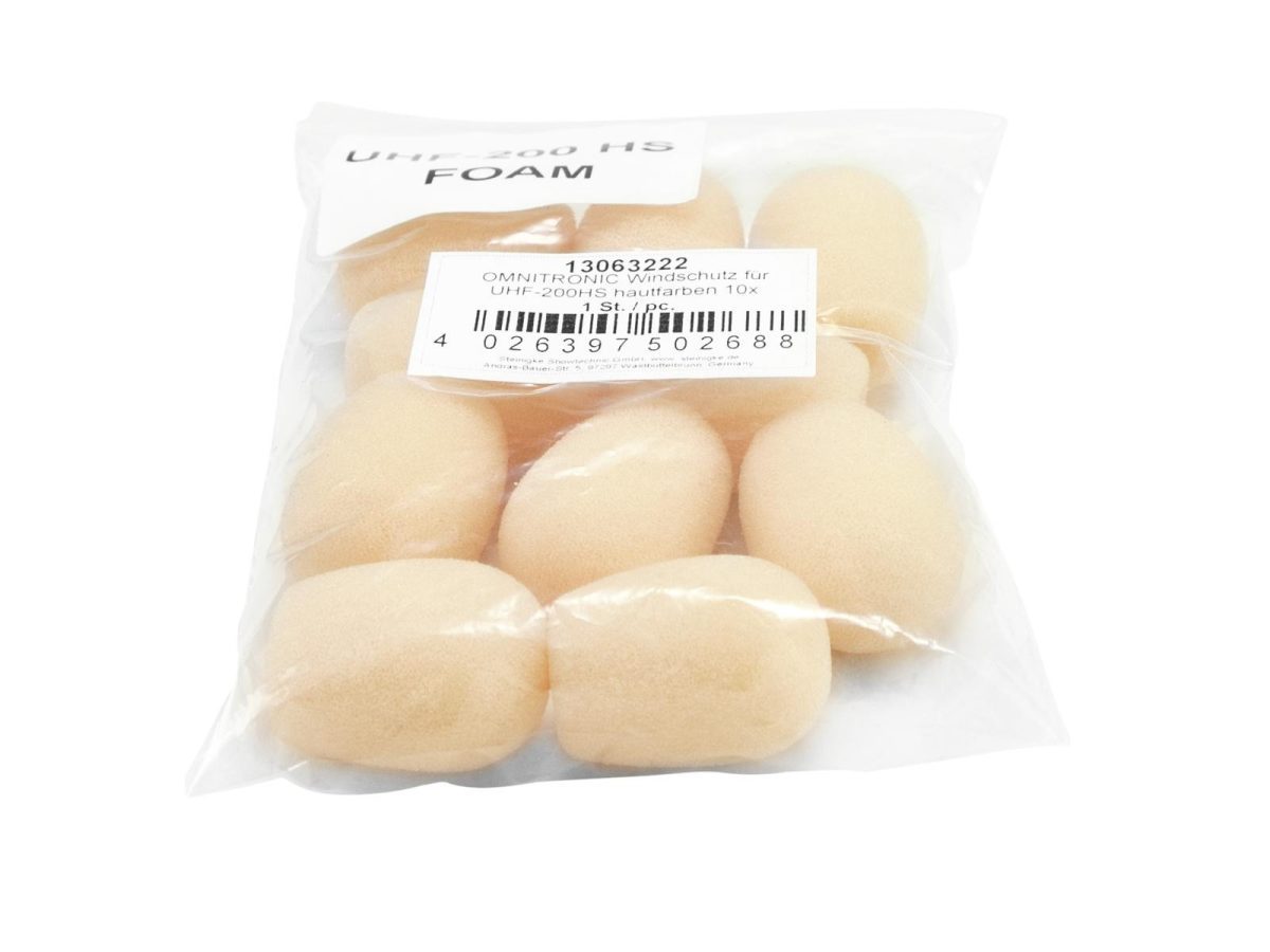 OMNITRONIC UHF-100 Windshield, skin-coloured 10x – Bőrszínű mikrofon zajvédő, 10 db-os