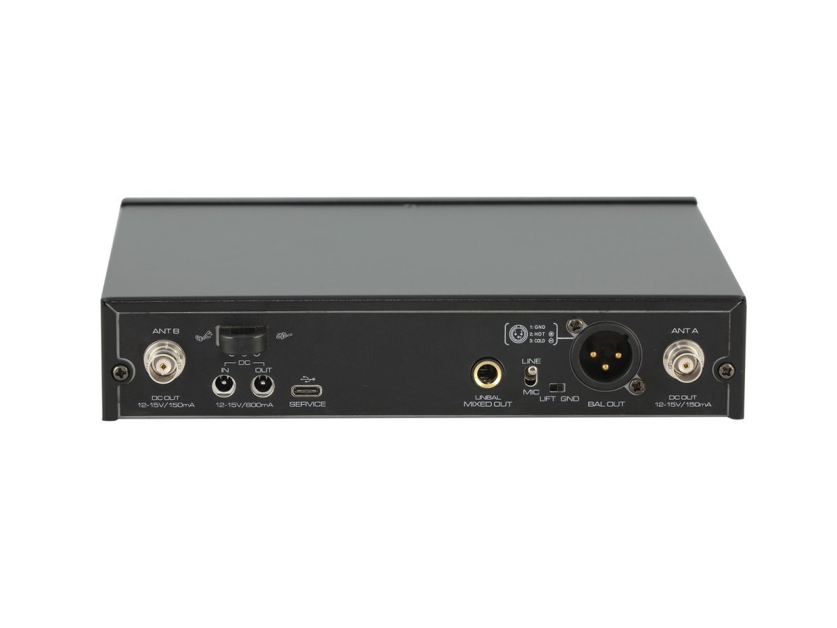 - Professzionális többfrekvenciás vezeték nélküli vevő, True Diversity vétellel színpadi használatra