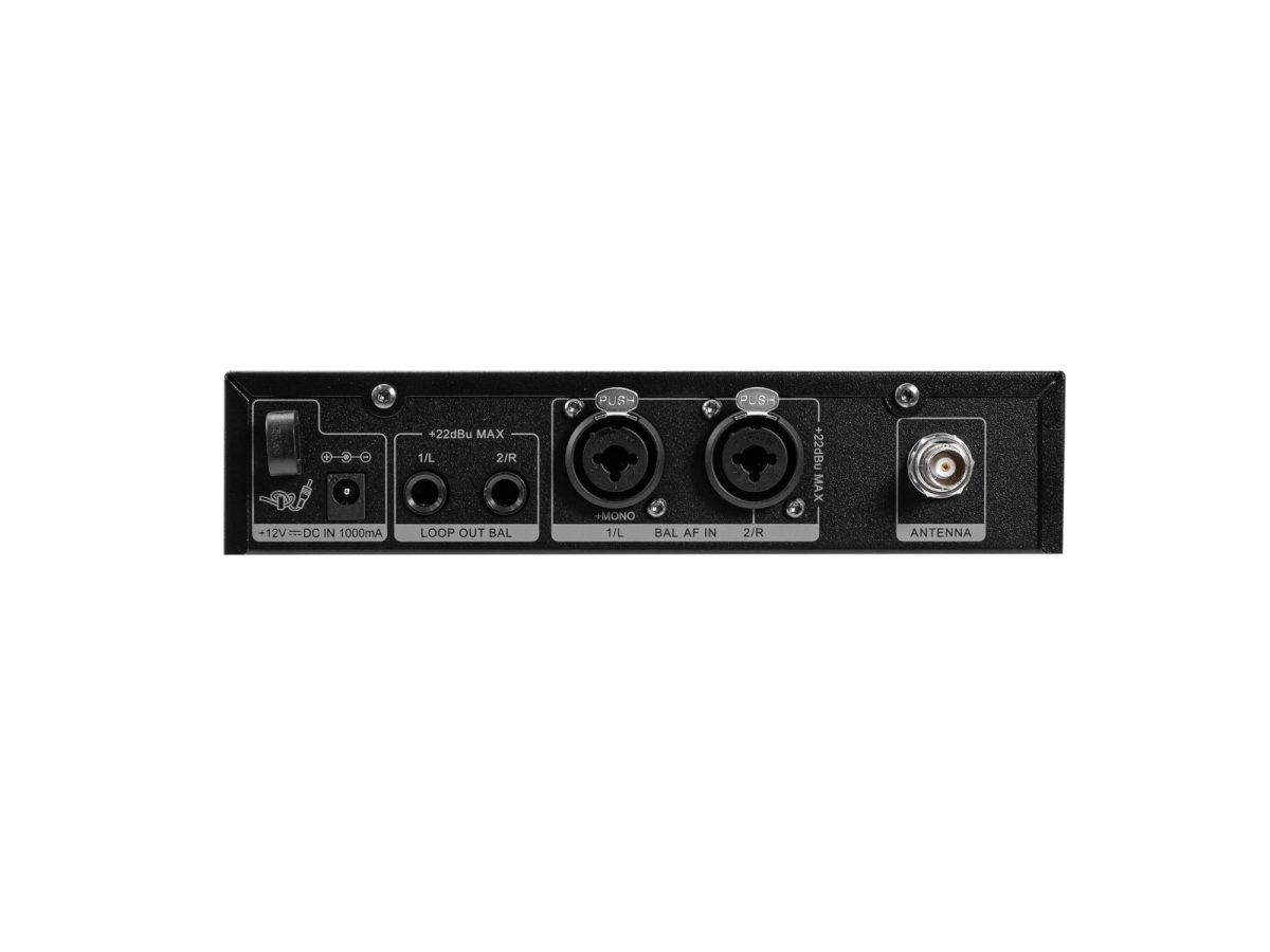 | Csatlakozások: | Antenna 1 x BNC-n (F) Bemenet: vonal 2 x 3 Pin XLR/6,35 mm-es jack (F) kombinált foglalaton keresztül (szerelhetõ változat) Kimenet: vonal 2 x 6,3 mm-es jack foglalaton ( sztereó) rögzítési változat Kimenet: fejhallgató 1 x 6,3 mm-es jack foglalaton keresztül (sztereó) rögzítési változat |